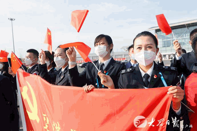 ????迎接儀式結束后,隊員們陸續登車,在警車護衛下離開機場。劉家義等向他們揮手致意,目送車隊駛離。