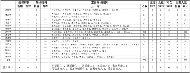 ????備注:1.山東省本地病例按確診時(shí)醫(yī)院所在縣區(qū)統(tǒng)計(jì),境外輸入病例單獨(dú)統(tǒng)計(jì)。