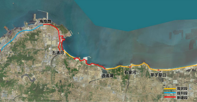 ??????沿步道升級改造總面積64.8公頃的郊野休閑景觀帶,將讓市民和游客在一步一景中,實現從城市到海邊的“浪漫過渡”。目前,已栽植櫻花、紫薇、紫葉李以及各種草花20余萬株,栽植檉柳、造型黑松、龍柏等耐鹽堿、抗海風生態樹種三萬多株。
