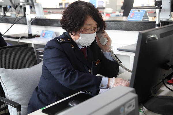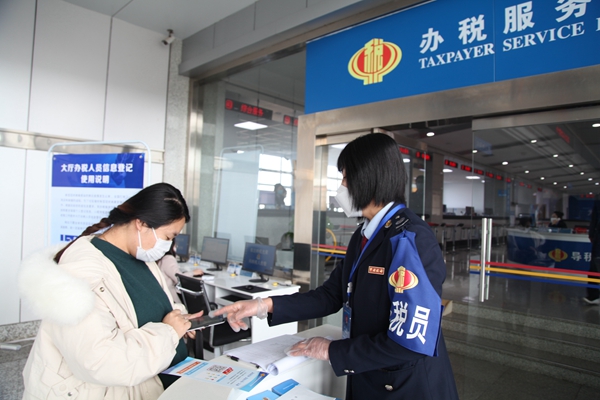 導稅人員對到廳辦理業務的納稅繳費人現場輔導推廣“非接觸式”辦稅方式。