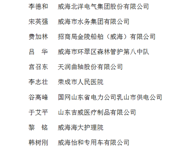 威海市“最美職工”名單