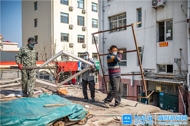 ??????“大家麻利點,注意安全?!?月25日早上8點,環翠區鯨園街道辦事處副主任李錫杰已經在鯨園街道紀念小區扯著嗓子指揮作業。