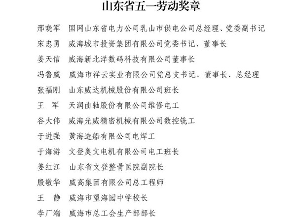 4月28日,山東省總工會(huì)發(fā)布了2020年全省五一勞動(dòng)獎(jiǎng)狀、獎(jiǎng)?wù)潞凸と讼蠕h號(hào)評(píng)選結(jié)果。威海有3個(gè)集體獲得全省五一勞動(dòng)獎(jiǎng)狀榮譽(yù),13個(gè)個(gè)人獲得全省五一勞動(dòng)獎(jiǎng)?wù)聵s譽(yù),8個(gè)集體獲得全省工人先鋒號(hào)榮譽(yù)。