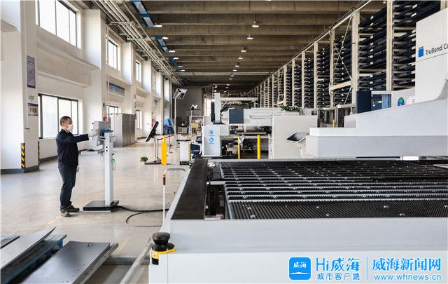 ??????在新北洋智能終端設備產業園項目施工現場,來自德國通快設備的高速數控沖床一字排開,設備的基礎部分已安裝完成,待調試完畢和應用軟件安裝后,將進入單機調試階段。