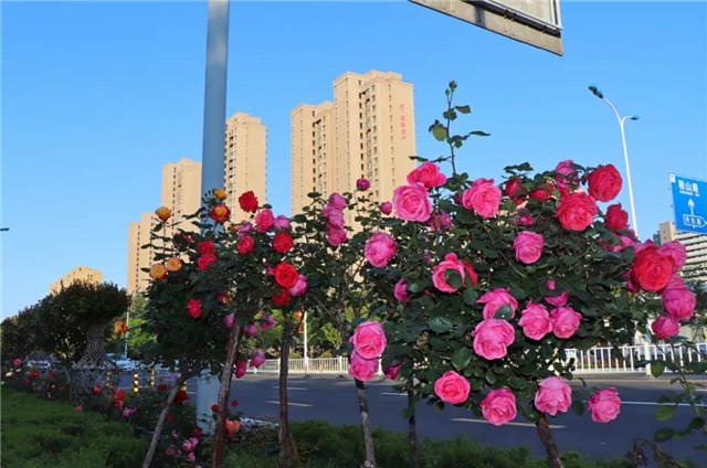 文化路不僅漫溢城市綠韻,而且花團錦簇,姹紫嫣紅開遍 。薔薇花柱、攀爬月季、紫薇花瓶、薔薇花球……造型各異的立體花卉成為街頭靚麗風景。(來源:高新區(qū)工委宣傳部)