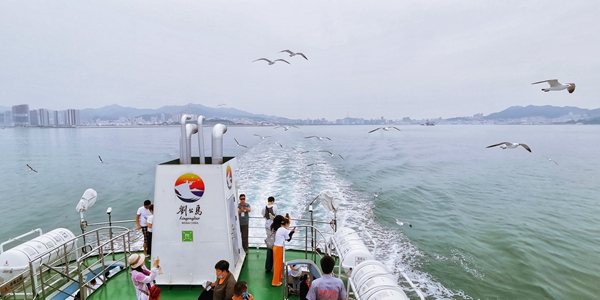 采風團一行乘船來到劉公島景區。 (攝影 紀春章)