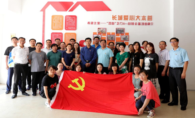 ??????全體黨員教師先后參觀了 “雙自”之門8+1系統(tǒng)公益助殘項目、長城愛心大本營志愿服務活動文化長廊以及黨建活動工作展廳,身臨其境感受長城愛心大本營這一社會公益組織給廣大殘疾人朋友帶來的福祉和幸福,身同感受扶貧助殘公益行動在新時代文明實踐中的感召力。參觀結(jié)束全體黨員教師與黨旗合影。