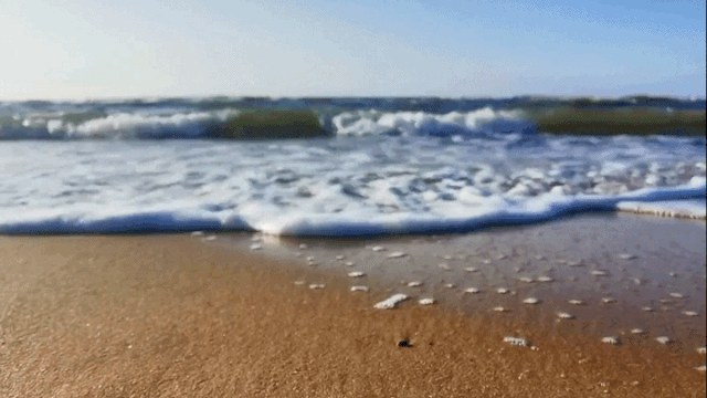 可能因?yàn)槭恰氨焙!钡木壒剩L(fēng)的脾氣似乎并不急躁,但空氣中依舊帶著微咸的味道。驕陽(yáng)艷艷,藍(lán)天白云,水清沙幼……看到當(dāng)下的景致,再糟糕的心情也會(huì)瞬間變好。