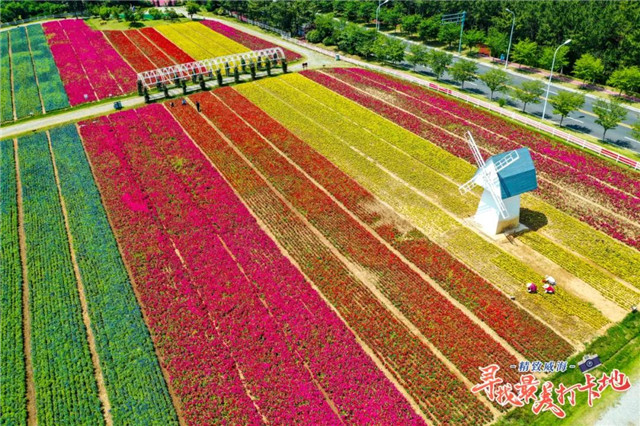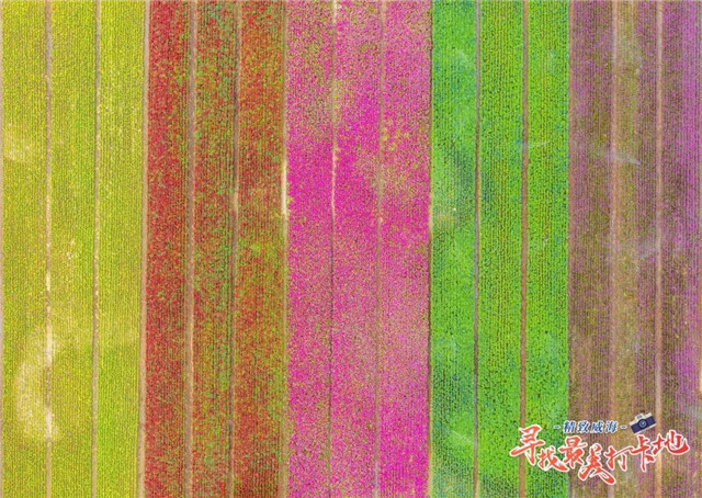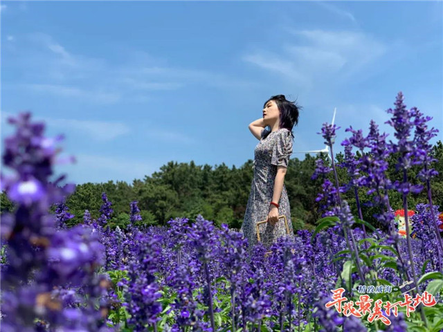 初夏柔和的風(fēng)輕輕吹過(guò)錦繡花海,宛如大海的波浪層疊起伏,團(tuán)團(tuán)簇簇、姹紫嫣紅,紫藍(lán)紅黃的色彩在視野中一下子炸開,瞬間美到窒息。