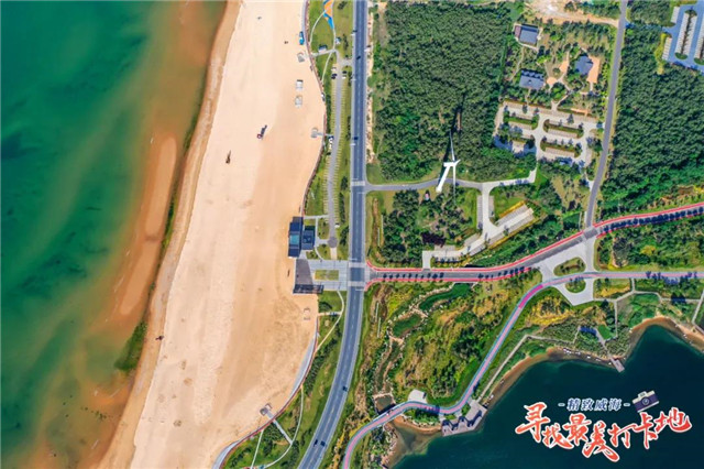 在錦繡花海西邊不遠(yuǎn)處,有一處海水浴場(chǎng)名叫逍遙灣國(guó)際海水浴場(chǎng)。