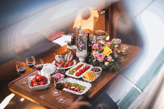 ????“劉公島”號是單體龍骨帆船,但內部空間相對較大。豐富的水果拼盤、豐盛的海鮮大餐,還有醉人的美酒佳釀,帆船上照樣都可以有!想想坐擁360度海景,相互嬉戲玩鬧,一起享受美食美味,豈不快哉!