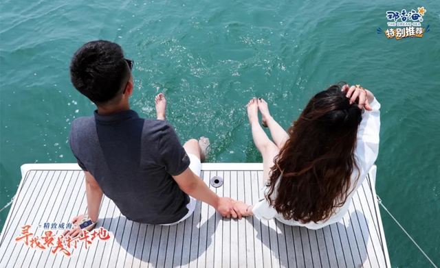 ????當然啦,相比較激烈的運動方式,有些人也喜歡靜靜的欣賞。站在船上,盡覽整個威海灣,夕陽、藍天、大海……落日余暉下山海呼應的畫面,有種置身電影畫面的既視感。