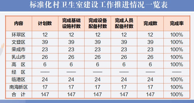記者從市衛生健康委了解到,為切實滿足群眾的基本醫療及公共衛生服務需求,全力提升基層醫療衛生機構綜合服務能力,努力為人民群眾提供更加安全有效、方便經濟、綜合連續的健康服務,我市開展基層醫療衛生機構服務能力提升行動。截至目前,列入計劃的147處村衛生室已全部改造完成,提前完成年度標準化建設任務。其中,環翠區建成標準化農村衛生室12處,文登區39處,榮成市23處,乳山市26處,高區6處,臨港區 24 處,南海新區17處。