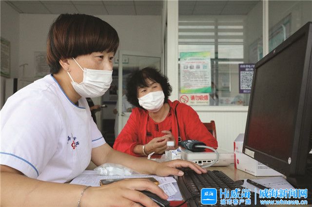 在環翠區羊亭鎮羊亭村的羊亭中心衛生室,鄉村醫生李偉宏正在使用艾灸儀為村民劉昌燕做理療。李偉宏還為劉昌燕建立了個人健康檔案,存入專門的健康檔案柜中。