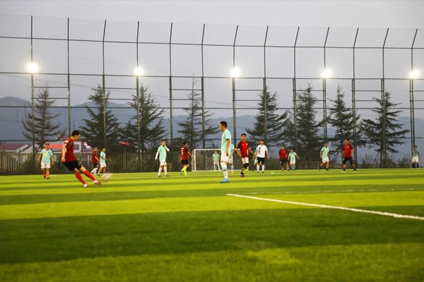 ??????7月20日晚,高新區華田體育公園的足球場燈火通明,一場酣暢淋漓的足球較量正在這里進行。OldMAN球隊隊員王斌表示,以前踢球沒有場地,我們只能去一些開放的球場,但是球隊多,輪換不開。今天第一次來這個體育公園,感覺確實很棒,包場的話,公園還給我們提供水和淋浴的地方,我們打算以后每周在這踢一兩次。