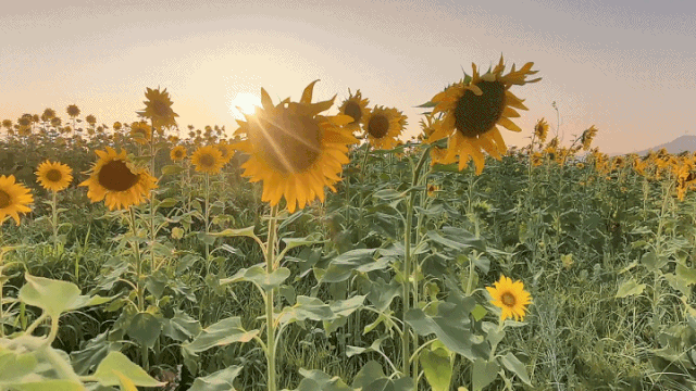 ?????提及向日葵,首先想到的便是荷蘭后印象派畫家梵高筆下的《向日葵》,或絢爛或枯萎,若隱若現,形態各異的向日葵呈現出明亮又強烈的生命力,讓無數人心生敬畏和向往,想要去看看線條與色彩背后大片金燦的向日葵。