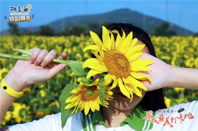 ??????200萬株向日葵已在此等候多時了,選一個明媚的好天氣,帶上滿分的好心情,赴一場盛夏的向日葵之約吧。(Hi威海客戶端記者 胡楊/文 宮舉衛 劉彬/圖 王慧敏/視覺)