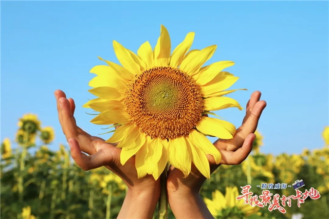 ??????其實,不用去到梵高《向日葵》的創作地法國南部,在威海就能逢遇近千畝絢爛的向日葵花海,其顏值絲毫不輸梵高筆下的向日葵,在環翠區張村鎮南山、姜南莊和福德莊附近,200多萬株向日葵迎風而立,甚是壯觀。