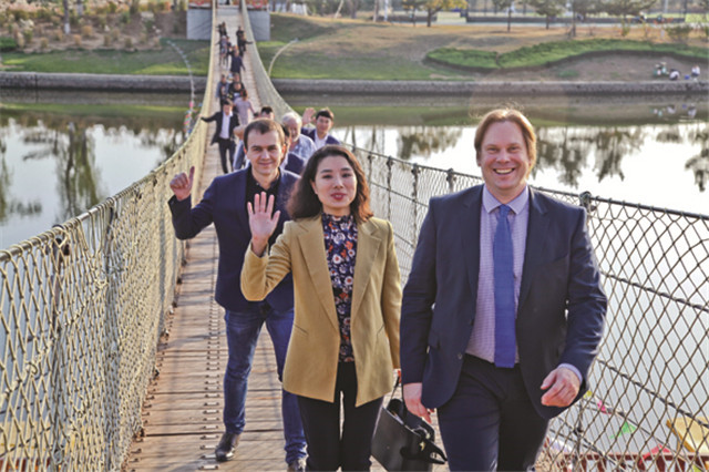 活動現場還連線了部分歐洲專家,意大利籍專家馬可通過視頻連線和大家親切打招呼:“大家好,我是意大利的馬可,威海環境優美,適合居住和投資,歡迎大家都來威海。”俄羅斯籍的電控技術專家Alex Guliyant說:“我非常喜歡這里,威海中德生態城,是我的‘第二故鄉’。”這些專家很多都是在威海中德生態城編制規劃以后,核心區的基礎配套建設和招商引資引智同步進行時受邀來到威海的,他們也帶來了先進的生態環保理念和技術項目。