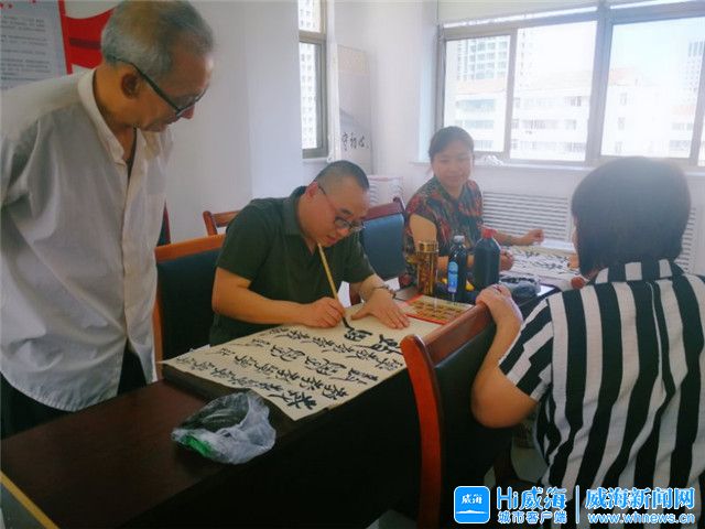 在距離金海灘社區(qū)4公里的寨北社區(qū),每周四上午是社區(qū)居民一起上書法課的時間。7月30日上午,十幾名居民如約來到老師的課堂上,一筆一劃,每個人都練得非常認(rèn)真。上課的居民中有純新手,也有資深書法愛好者,大家聽完老師的集中授課,就開始分頭練習(xí),兩個小時過得飛快。