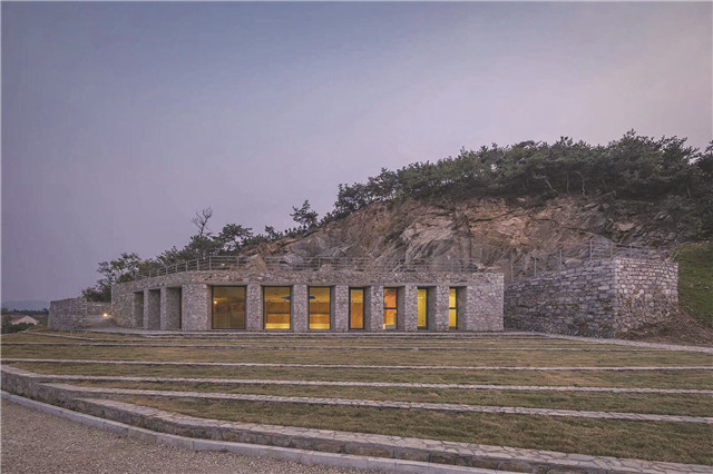 “石窩子”是膠東人對礦坑的叫法,石窩劇場就是由廢棄礦坑改造而來。它以采礦裸露出來的斷崖作為劇場背景,觀眾面向石壁而坐,石壁成了觀演對象之一。劇場的下方,還藏著一處別致的“石屋咖啡館”。