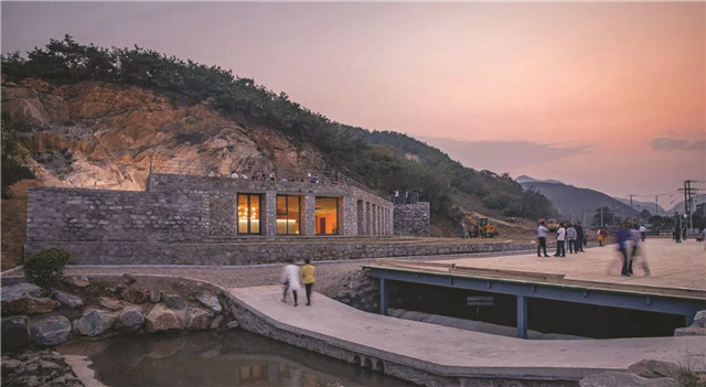 “礦坑與村莊只有一路之隔,在這里建個劇場,哪怕給老百姓跳廣場舞也好。”何崴當初設想。如今,石窩劇場當然不止跳廣場舞這一個功能,鄉村文化節、公益電影、文藝匯演、送節目下鄉、百姓宣講等大大小小的活動,都在這里舉辦過。五家疃村和周圍村子的村民也喜歡到這里休閑,幾乎每天晚上,這里都熱鬧非凡。孩子們在舞臺上追跑打鬧,在石板小徑上蹦蹦跳跳,老人們則坐在看臺上聊天。村莊的活力仿佛都被這處劇場點燃了。“老百姓喜歡,是對建筑師最大的褒獎。”何崴說。