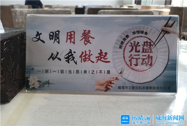 ??????威海新聞網(wǎng)訊 8月18日,記者走進(jìn)文登區(qū)政府餐廳發(fā)現(xiàn),餐桌上、墻面上、電子屏幕上,處處都有“文明用餐”“節(jié)儉養(yǎng)德”“光盤行動(dòng)”等溫馨提醒。