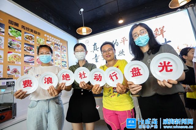 ??????在環翠區威海傳統美食街,前來就餐的市民倡導“光盤行動杜絕浪費”