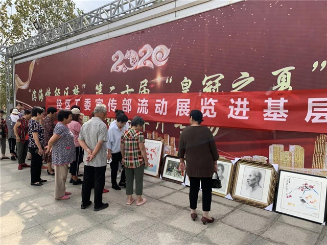 活動當日,首場展覽共展出120幅書畫和攝影作品,百尺所社區、所前莊社區、邵家莊村和嶺后村四個村居的群眾扶老攜幼前往觀看,活動現場人流攢動。群眾紛紛表示,展覽作品以社會主義核心價值觀為主導,展示了新時代的社會風貌和中國力量,既振奮人心又倍感自豪。