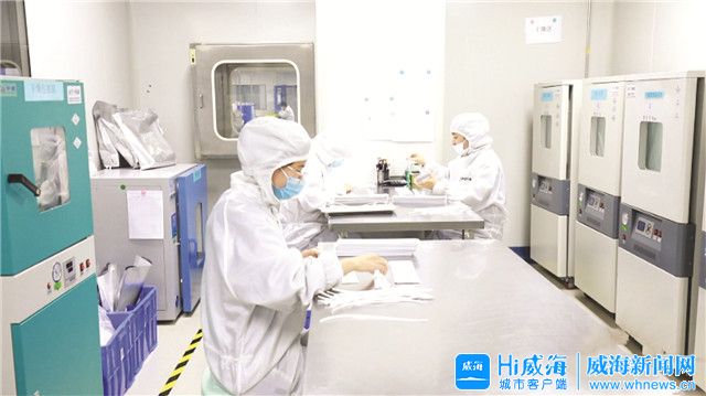 ??????9月7日,記者在位于高新區醫療器械與生物醫藥產業園B3棟2樓的威海紐普生物技術有限公司凈化車間看到,工作人員正加緊生產體外診斷試劑。