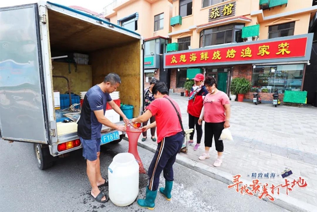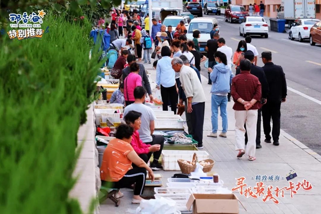 ????巴掌大小的對蝦、活蹦亂跳的皮皮蝦、躍躍欲試的八爪魚、純野生的牡蠣、魚眼锃亮的鲅魚……琳瑯滿目的海鮮沿著長街一字排開,質樸的漁販為自家新鮮的海鮮賣力吆喝,前來挑選的人絡繹不絕,既有周邊熟絡的老顧客,也有慕名而來的外地朋友。