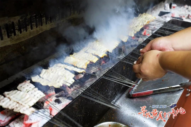 ????北山街有三位小有名氣的“燒烤神仙”深受食客喜愛,那就是來自本來燒烤的神仙烤雞、神仙烤肉、神仙烤魚,燒烤店的周師傅有十幾年的燒烤經驗,熟練地拿捏著食材、火候、醬料這三大要素,保證每一把燒烤都是正宗味道。