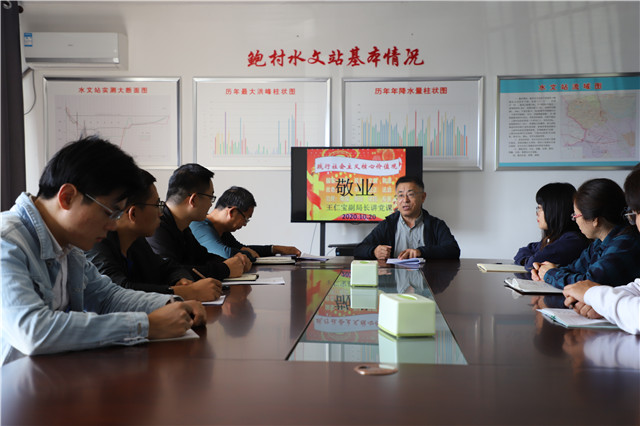 王仁寶著重強調了“敬業”二字,敬業是社會主義職業道德的核心理念,他說,國家的發展與社會的進步,團隊事業的成功與組織目標的實現,個人作為的大小與價值的實現,都有賴于此。因此,作為水文人,更應該秉持著“團結、求實、奉獻、進取”的水文精神,不忘敬業,勤奮工作,努力踐行社會主義核心價值觀。