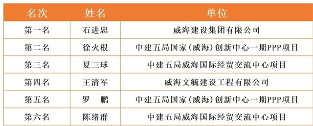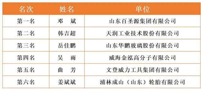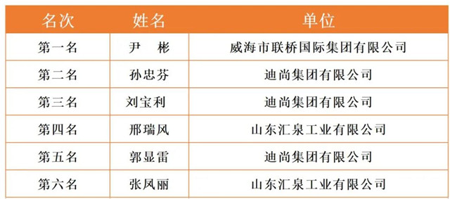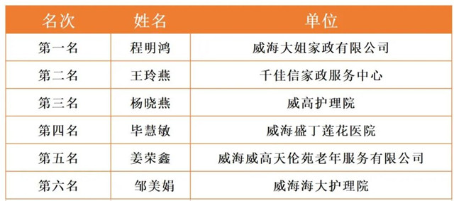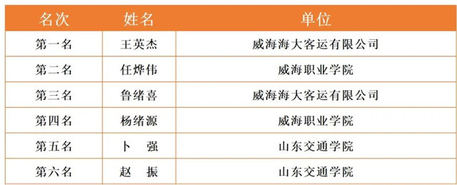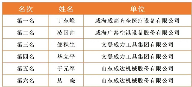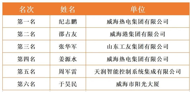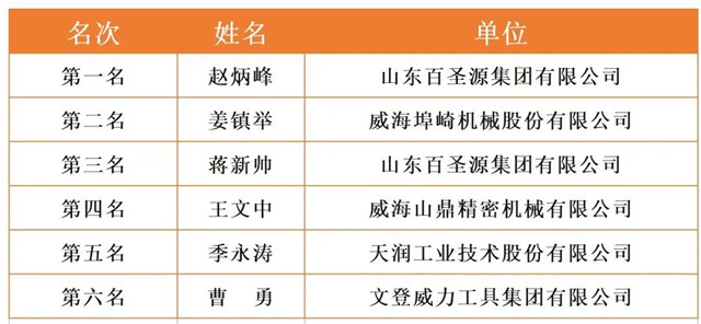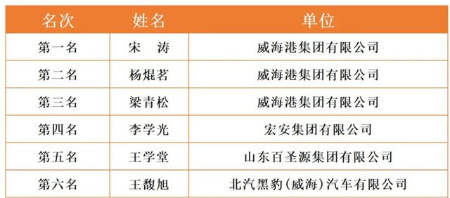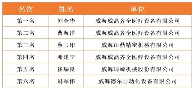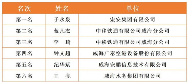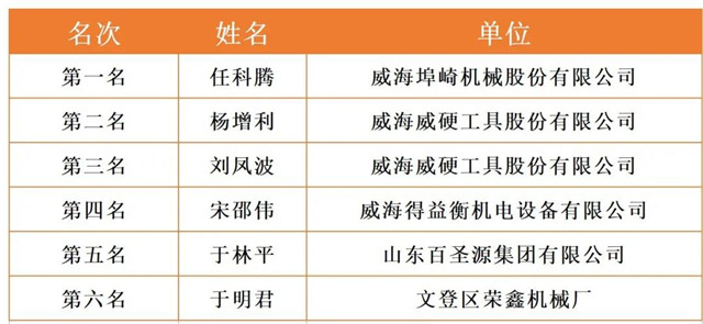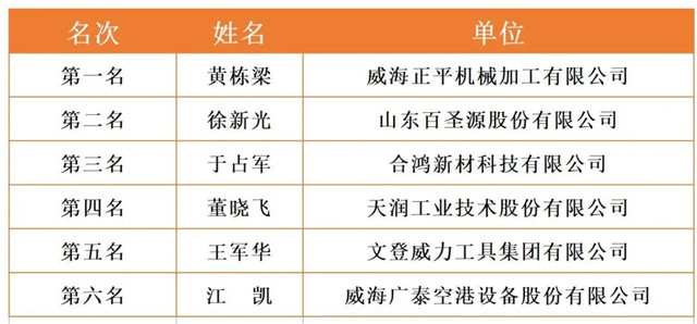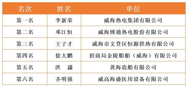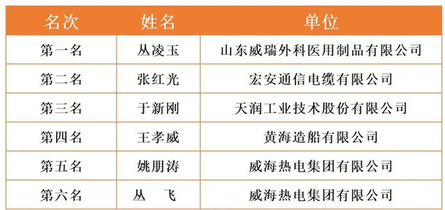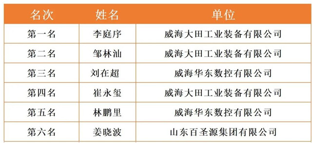 威海市2020年職工職業技能競賽決賽各工種前六名選手名單