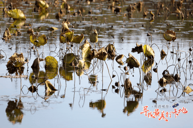 ????幾只水鳥沿著水面低飛展翅,臨水岸邊香蒲、蘆葦隨風飄搖,河畔的草木盡顯秋色,此時荷塘褪去了夏的嬌艷,只剩下干枯的蓮葉和蓮蓬,在風中彰顯著荷的風骨和神韻。