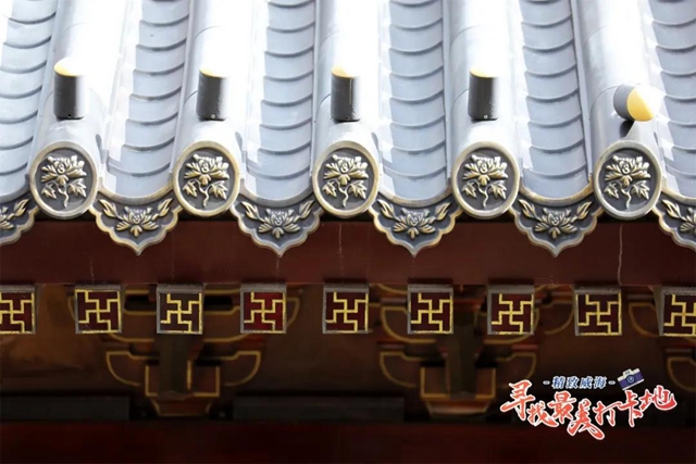 ????不經(jīng)意地抬起頭,便被那雕梁畫棟、青磚黛瓦、斗拱飛檐中的中式建筑之美所震撼,于大處見棱角,于方寸間現(xiàn)茱萸,即便繁復(fù),卻彰顯雍容大氣。
