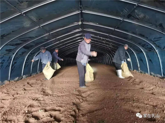 ??????眼下,乳山市馮家鎮(zhèn)南泥溝村的羊肚菌大棚種植基地里一片繁忙的景象,工人們將小小羊肚菌種播撒到土地里,期盼來年能有好收成。
