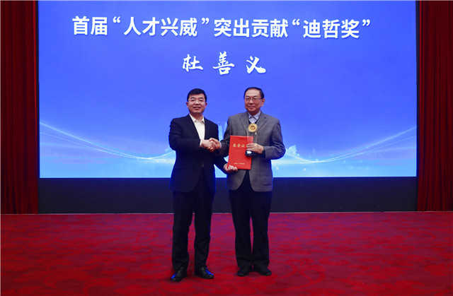??????威海迪尚人才發(fā)展基金會由迪尚集團捐資 5000 萬元注冊成立,是全省首家以民營企業(yè)為主體的公益性人才發(fā)展基金會,將助力我市開展專家引進、人才培訓、表彰獎勵等各項人才活動,帶動更多社會力量參與人才工作。“人才興威”突出貢獻獎由市人才工作領導小組與基金會共同發(fā)起,主要表彰獎勵為威海經(jīng)濟社會發(fā)展作出卓越貢獻的代表性人才和先進單位。會上,杜善義獲頒“人才興威”突出貢獻“迪哲獎”,威高集團有限公司、天潤工業(yè)技術股份有限公司獲頒“人才興威”突出貢獻“尚賢獎”,朱立華、陳林分別代表基金會、先進單位交流發(fā)言。(Hi威海客戶端記者 初佳倫/文 朱春曉/圖)