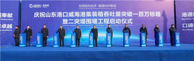 ??????閆劍波在致辭中說,威海港集裝箱吞吐量突破一百萬標箱,是威海深入貫徹習近平總書記經略海洋重要指示要求的重大成果,是落實省委、省政府戰略部署,推動山東沿海港口一體化發展的重大成果,是威海大力實施以港興市、興港強市的重大成果。二突堤圍堰工程啟動建設,將為威海港進一步提升港口吞吐量打下更堅實的基礎。希望威海港進一步搶抓機遇,加大港口業務開發力度,提升港口未來發展基礎保障能力,努力建設世界一流的海洋港口。市委、市政府將全力支持威海港發展,以中韓自貿區地方經濟合作示范區產業園建設為契機,與省港口集團聯手打造“四港聯動”引領區,推動港口多元化、多業態、融合發展。