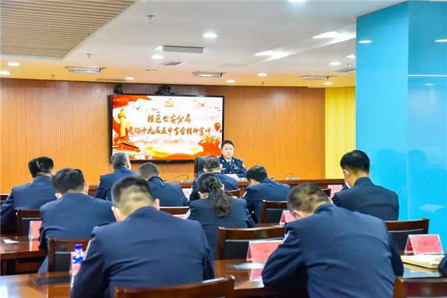在經區公安分局,黨委書記、局長于光福圍繞習近平總書記在黨的十九屆五中全會上的重要講話和全會通過的規劃《建議》,聚焦新發展階段、新發展理念、新發展格局,結合公安實際工作,對黨的十九屆五中全會精神作了深入淺出的闡釋和講解。與會民警表示將以此次學習為契機,對照全市縣級公安機關重點工作考核標準,固根基、補短板、強弱項,以破釜沉舟的勇氣和抓鐵有痕的韌勁,全力沖刺各項任務,為今年工作收好官、為明年工作開好局。