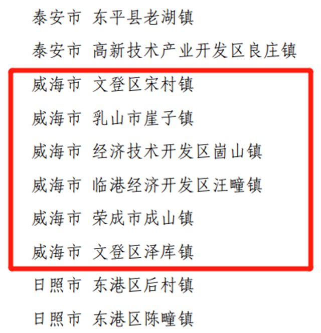 ??????12月24日,省農業農村廳下發《關于公布2020年省級農業產業強鎮認定名單的通知》,認定濟南市歷城區唐王街道等158個鎮(鄉、街道)為2020年度省級農業產業強鎮,現予以公布。其中,威海市共6鎮上榜。