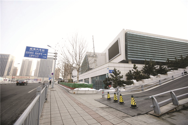 ??????步行到達威??瓦\中心南站附近疏站路的紅綠燈后,沿威海汽車站發貨處門前直行50米即可到達新汽車站售票大廳。(Hi威??蛻舳擞浾?劉凌玉 張玉婷/文 姚威/圖)