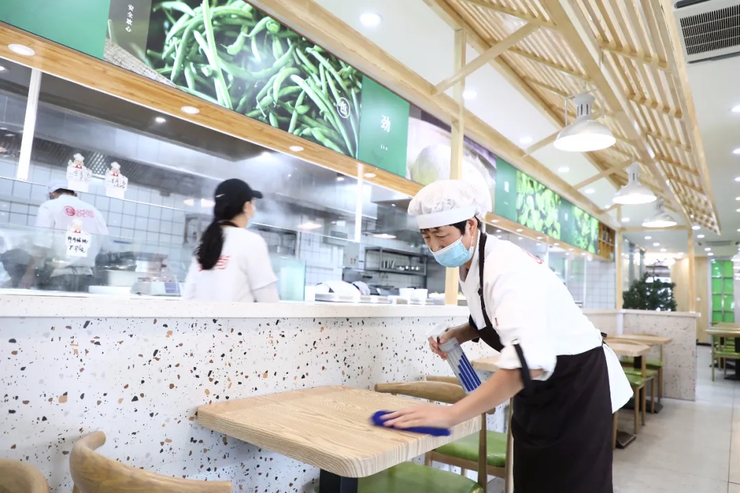 社區食堂作為政府惠民工程,保障其衛生防疫安全尤為重要。在西河北社區食堂,工作人員每天開窗通風,并分早中晚對地面、桌椅、臺面等處進行消毒消殺,所有餐具、碗筷全部放在消毒機里進行全面消毒。食堂內的食材均為當天采購,絕不供應過夜食品、不采購冷凍食品。每到飯點,食堂有專門工作人員在門口對每位就餐人員進行體溫測量、提醒佩戴好口罩。打飯時,所有就餐人員嚴格遵守“一米線”,就餐結束后,工作人員第一時間對已用餐具進行清洗并消毒,確保做到一人一具、一用一消毒。