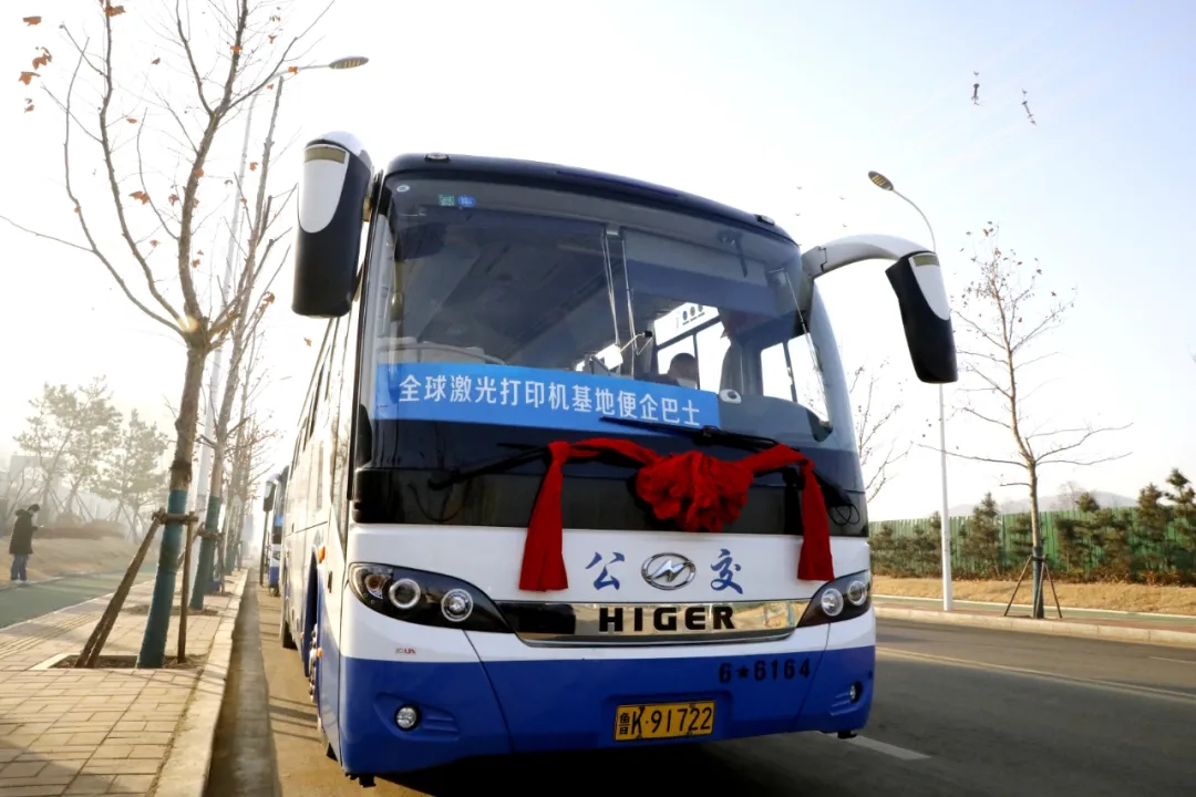 ??????1月30日一大早,一輛披掛大紅花的“全球激光打印機基地便企巴士”駛入電子信息與智能制造產業園。在高新控股集團公司的積極推進和協調下,1月30日,威海市公交集團為園區企業員工推出的“定制公交”正式上路運行,為園區內員工出行提供便利。