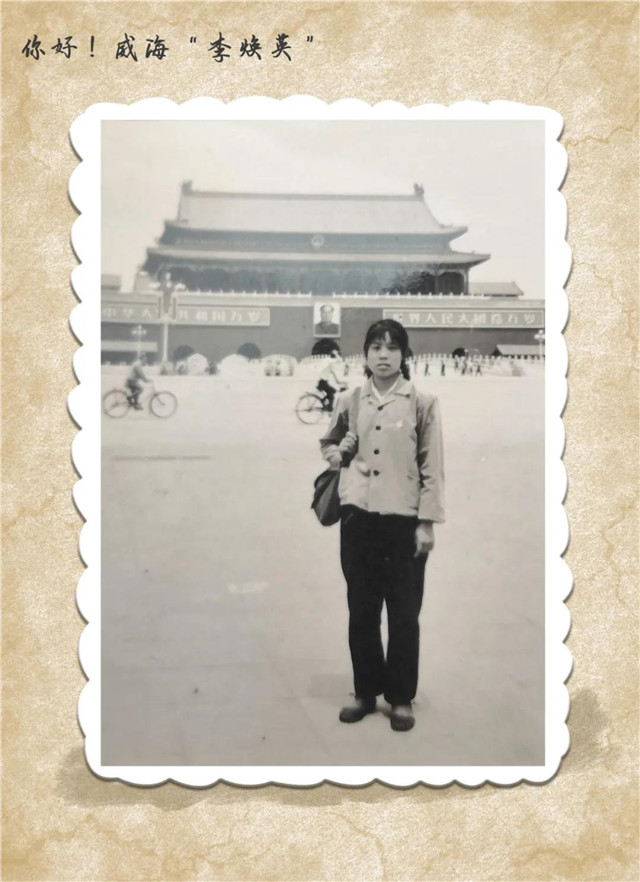 ??????藍綠黑灰是70年代穿著打扮的主色調(diào),照片中的媽媽扎著兩個小麻花辮兒,青澀的笑容里掩飾不住對北京天安門的喜愛之情。
