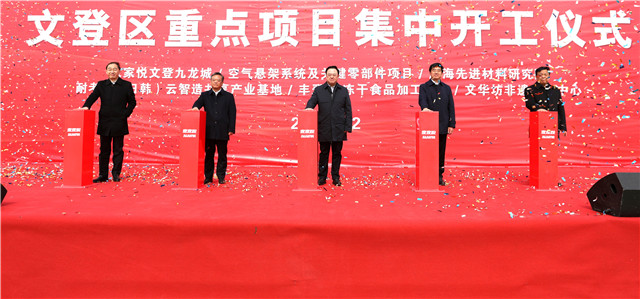 ??????文登區首批6個重點項目集中開工,總投資30.6億元,涵蓋制造業、服務業等領域產業。其中,家家悅控股集團股份有限公司文登九龍城項目將打造成為文登目前業態最豐富、功能最齊全的城市綜合體。空氣懸架系統及關鍵零部件項目,是打造文登汽車機電千億級產業集群的“撒手锏”項目。先進材料研究院項目,與裝備再制造技術國防科技重點實驗室合作,目標是打造國內“先進材料與增材制造產業化”領域的一流技術服務平臺。同時,耐考客云智造共享產業基地、豐登凍干食品加工以及文華坊非遺文化中心等項目也集中開工。