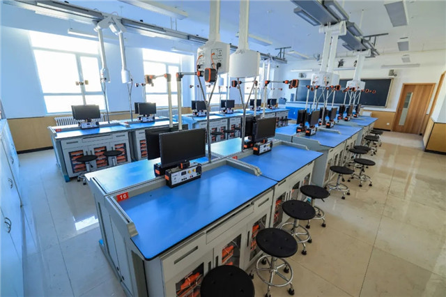 ??????校園內,38個專業實驗室、3個高端實驗室、1個奧賽實驗室,結合各大系統,實現了實驗教學的“互聯網+”。2500多平方米的創客中心,建有無人機教室、VR教室、三維設計室、機器人教室、未來教室、軟件制作室、學生作品展區、休閑區等功能區域,傳遞“盈科而進,善創者成”的創客教育理念。