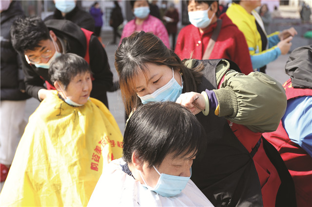 ??????有熱熱鬧鬧做宣傳的志愿服務隊,也有安安靜靜教手藝的志愿服務隊。來自剪紙協會和書法家協會的志愿者帶著各自的才藝來到活動現場,一時間,墨香四溢,窗花紅艷,吸引了大批市民駐足觀賞,更有踴躍者拿到心儀的書法作品和剪紙作品。