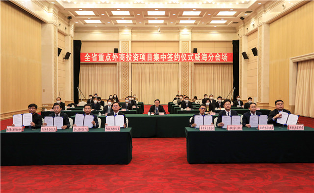 ??????威海新聞網訊 3月18日下午,全省重點外商投資項目集中簽約儀式舉行,通過“主會場+各市分會場+投資方簽約代表”視頻連線的方式,集中簽約94個外資項目。我市共有8個重點項目參加集中簽約,項目投資總額3億美元,合同外資1.2億美元,涉及新一代信息技術、新能源新材料、農副食品加工、商務服務業、高端裝備制造等行業領域。市委書記張海波在濟南主會場參加活動,市委副書記、市長閆劍波,副市長楊麗、張偉參加威海分會場活動,閆劍波在分會場介紹我市重點外資項目情況并主持簽約。