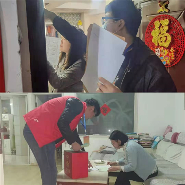3月25日晚6時許,威海市水文局4名志愿者來到恒泰街社區,挨家挨戶地發放換屆選舉選票。恒泰街社區是老舊小區,小區樓棟基本上沒有安裝電梯,志愿者們就一層一層地爬,一戶一戶地敲門,遇到業主的埋怨也沒有一句怨言,只為了換屆選舉能夠順利完成。